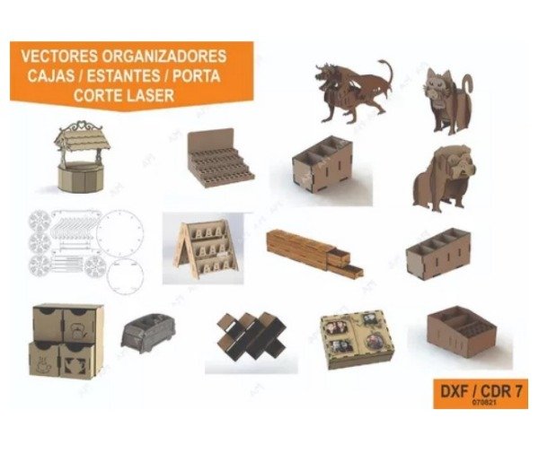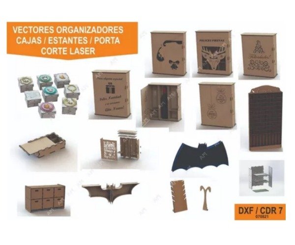 Vectores Organizadores Cajas Estantes etc.- Corte Láser (Avec021)
